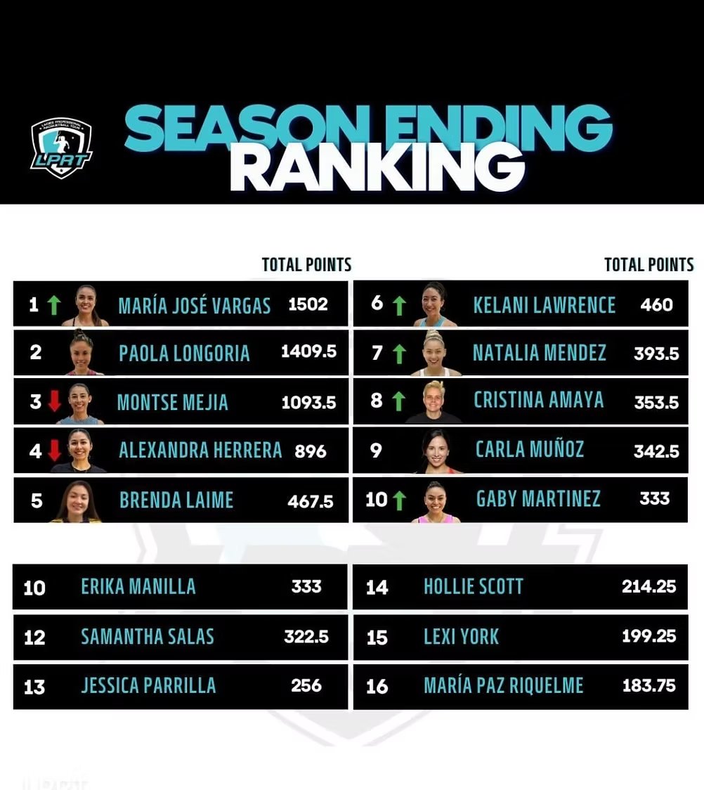 Gaby made it to 5 of the 8 events this season, and lost in the quarters all five times. this is a bit of a step back from her last two seasons, both of which she had Tier 1 wins. Her five QF losses were to Herrera, Amaya, Longoria, Mejia, and Herrera again, so really just one “bad” loss. Most of those losses were with Gaby in the #5 seed spot, so she’s playing #4 in the quarters, always a tough match. Martinez continues to tour part-time, regularly missing big chunks of the season, which will always make it challenging for her to push for the top spot.